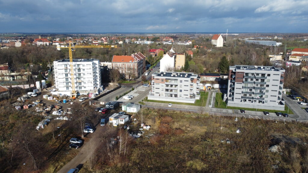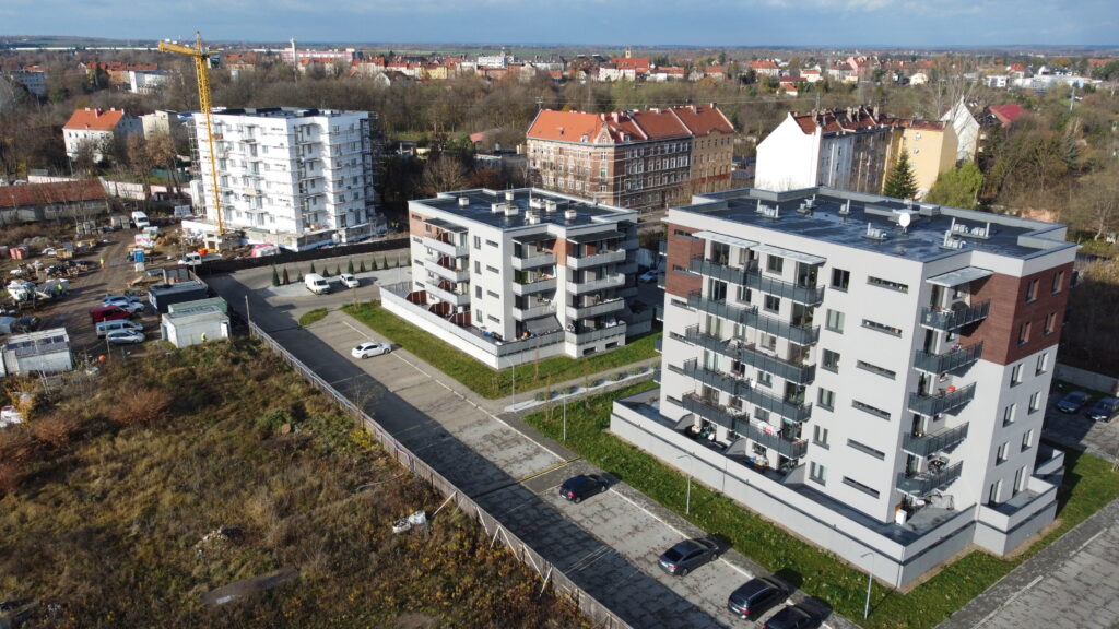 Budowa Osiedla budynków mieszkalnych przy ul. Wiązowej w Legnicy, obejmująca 4 budynki mieszkalne wielokondygnacyjne wraz z garażami podziemnymi. 124 mieszkania, o powierzchni łącznej wraz z garażami ponad 16.000m2, powierzchni mieszkań ponad 8.000 m2